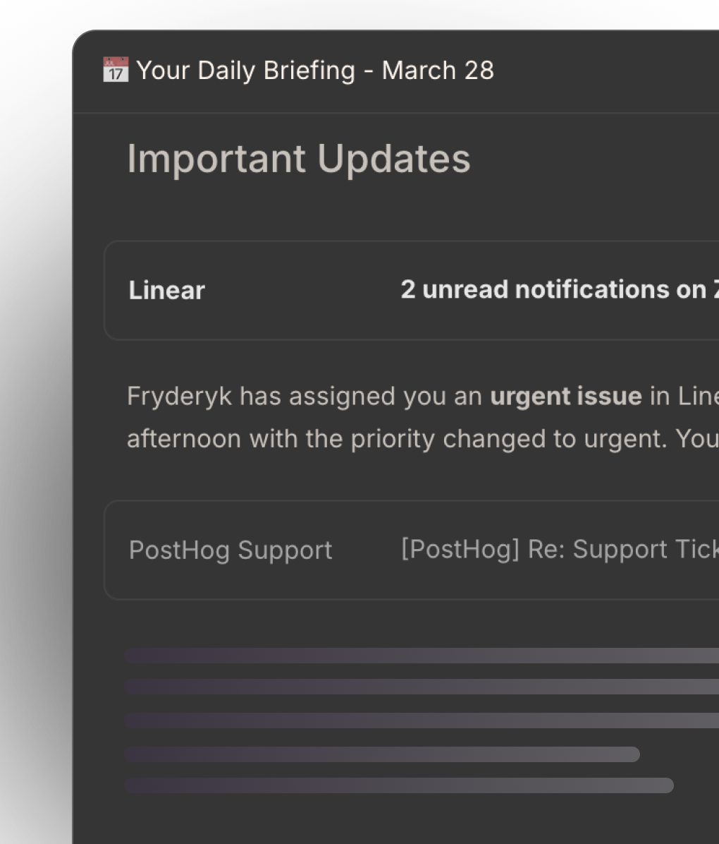 Start your day with emails organized, drafts ready in your voice, and daily brief for maximum efficiency.